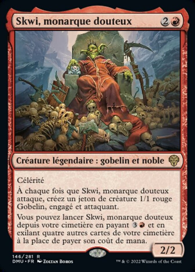 | Rules | Haste Whenever Squee, Dubious Monarch attacks, create a 1/1 red Goblin creature token that's tapped and attacking. You may cast Squee, Dubious Monarch from your graveyard by paying and exiling four other cards from your graveyard rather than paying its mana cost. |