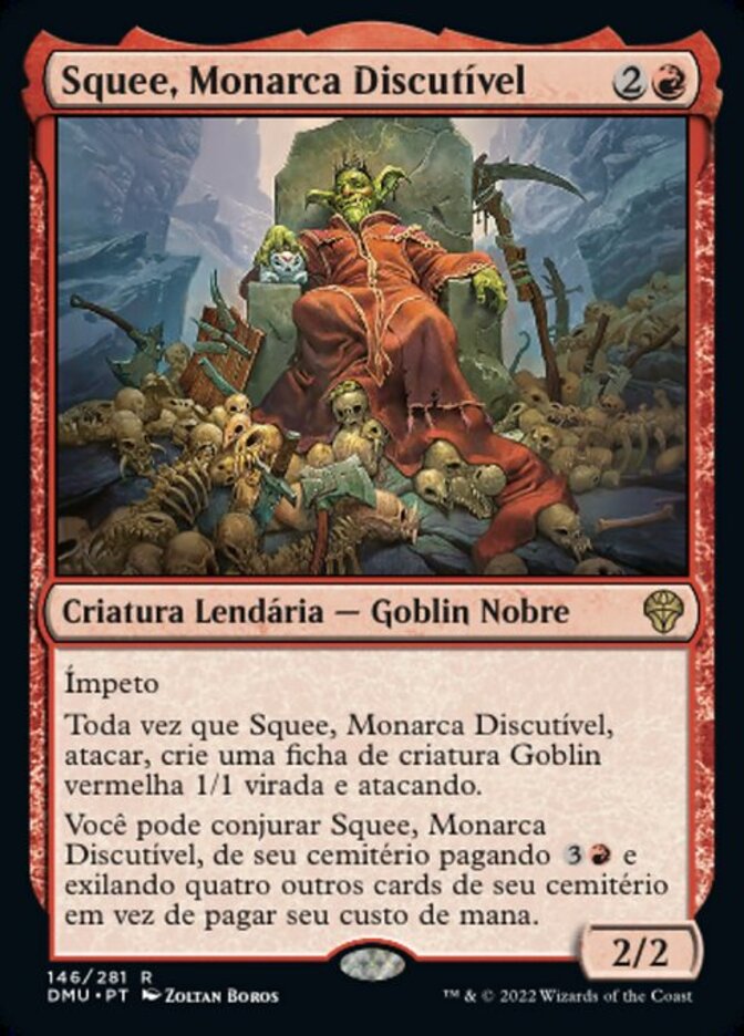 | Rules | Haste Whenever Squee, Dubious Monarch attacks, create a 1/1 red Goblin creature token that's tapped and attacking. You may cast Squee, Dubious Monarch from your graveyard by paying and exiling four other cards from your graveyard rather than paying its mana cost. |