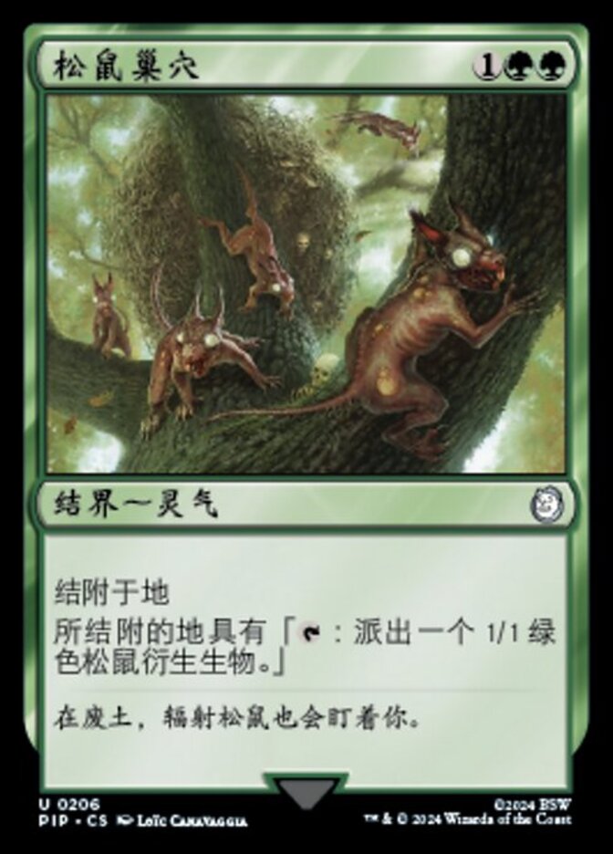 | Rules | Enchant land Enchanted land has ": Create a 1/1 green Squirrel creature token." |