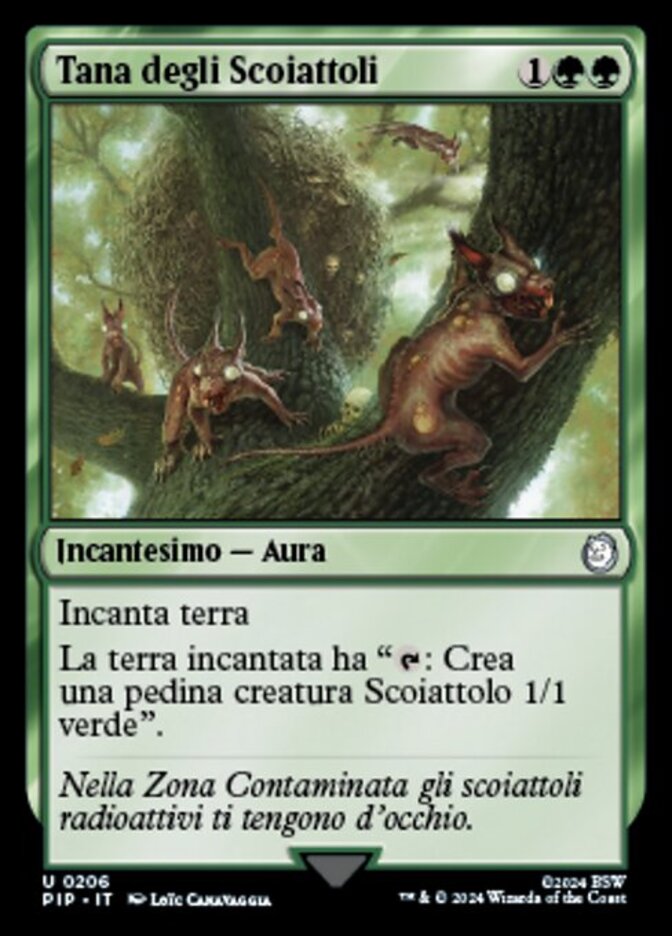 | Rules | Enchant land Enchanted land has ": Create a 1/1 green Squirrel creature token." |