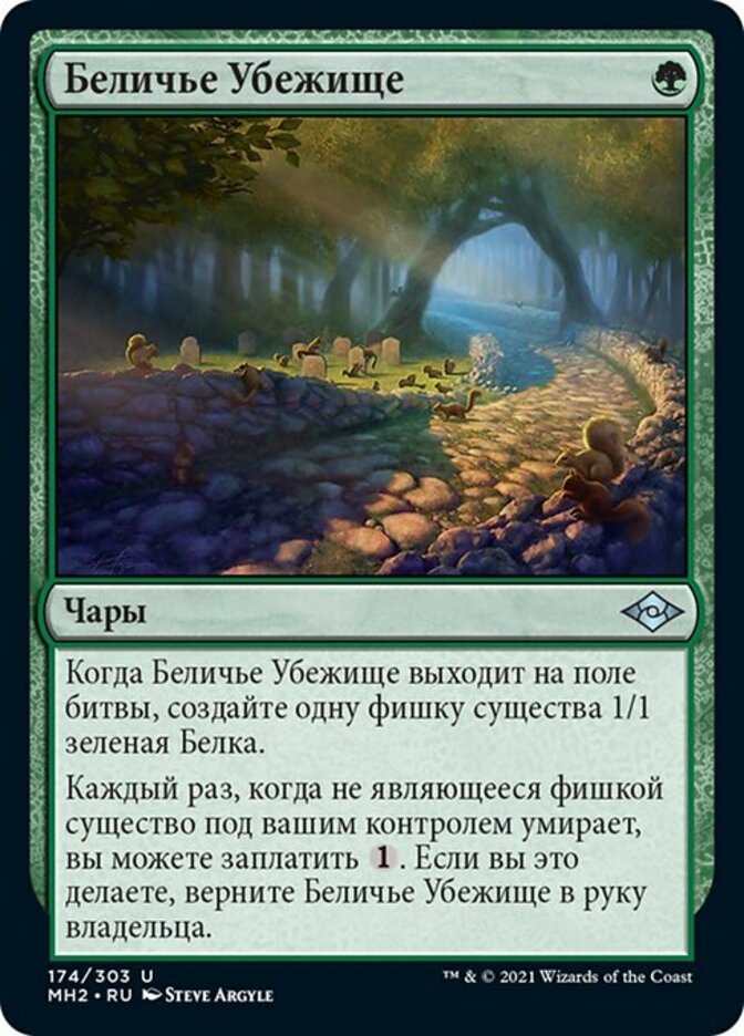 | Rules | When Squirrel Sanctuary enters the battlefield, create a 1/1 green Squirrel creature token. Whenever a nontoken creature you control dies, you may pay . If you do, return Squirrel Sanctuary to its owner's hand. |