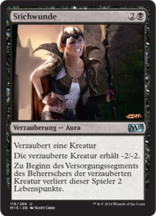 | Rules | Enchant creature Enchanted creature gets -2/-2. At the beginning of the upkeep of enchanted creature's controller, that player loses 2 life. |