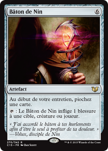 | Rules | At the beginning of your upkeep, draw a card. : Staff of Nin deals 1 damage to any target. |
