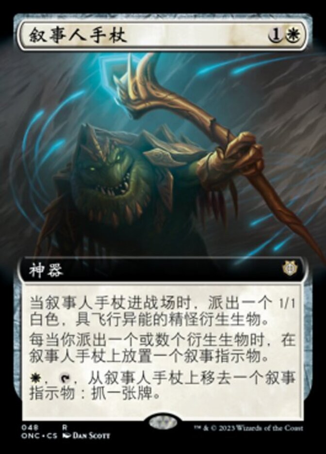 | Rules | When Staff of the Storyteller enters the battlefield, create a 1/1 white Spirit creature token with flying. Whenever you create one or more creature tokens, put a story counter on Staff of the Storyteller. , , Remove a story counter from Staff of the Storyteller: Draw a card. |