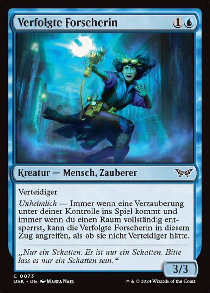 | Rules | Defender Eerie — Whenever an enchantment you control enters and whenever you fully unlock a Room, Stalked Researcher can attack this turn as though it didn't have defender. |