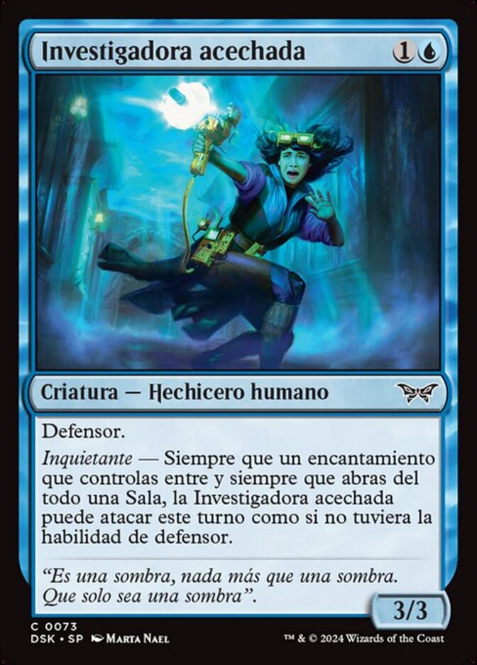 | Rules | Defender Eerie — Whenever an enchantment you control enters and whenever you fully unlock a Room, Stalked Researcher can attack this turn as though it didn't have defender. |
