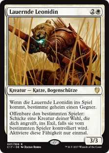 | Rules | When Stalking Leonin enters the battlefield, secretly choose an opponent. Reveal the player you chose: Exile target creature that's attacking you if it's controlled by the chosen player. Activate only once. |