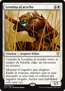 | Rules | When Stalking Leonin enters the battlefield, secretly choose an opponent. Reveal the player you chose: Exile target creature that's attacking you if it's controlled by the chosen player. Activate only once. |