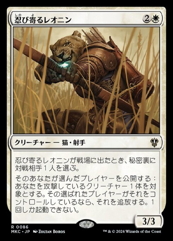 | Rules | When Stalking Leonin enters the battlefield, secretly choose an opponent. Reveal the player you chose: Exile target creature that's attacking you if it's controlled by the chosen player. Activate only once. |
