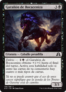 | Rules | Delirium — : Stallion of Ashmouth gets +1/+1 until end of turn. Activate only if there are four or more card types among cards in your graveyard. |