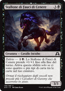 | Rules | Delirium — : Stallion of Ashmouth gets +1/+1 until end of turn. Activate only if there are four or more card types among cards in your graveyard. |