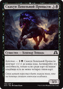 | Rules | Delirium — : Stallion of Ashmouth gets +1/+1 until end of turn. Activate only if there are four or more card types among cards in your graveyard. |