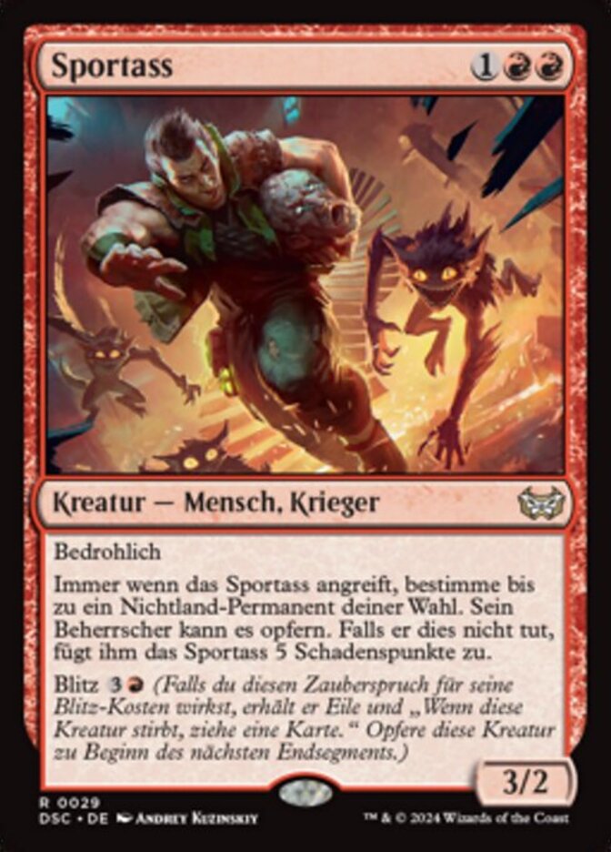 | Rules | Menace Whenever Star Athlete attacks, choose up to one target nonland permanent. Its controller may sacrifice it. If they don't, Star Athlete deals 5 damage to that player. Blitz (If you cast this spell for its blitz cost, it gains haste and "When this creature dies, draw a card." Sacrifice it at the beginning of the next end step.) |