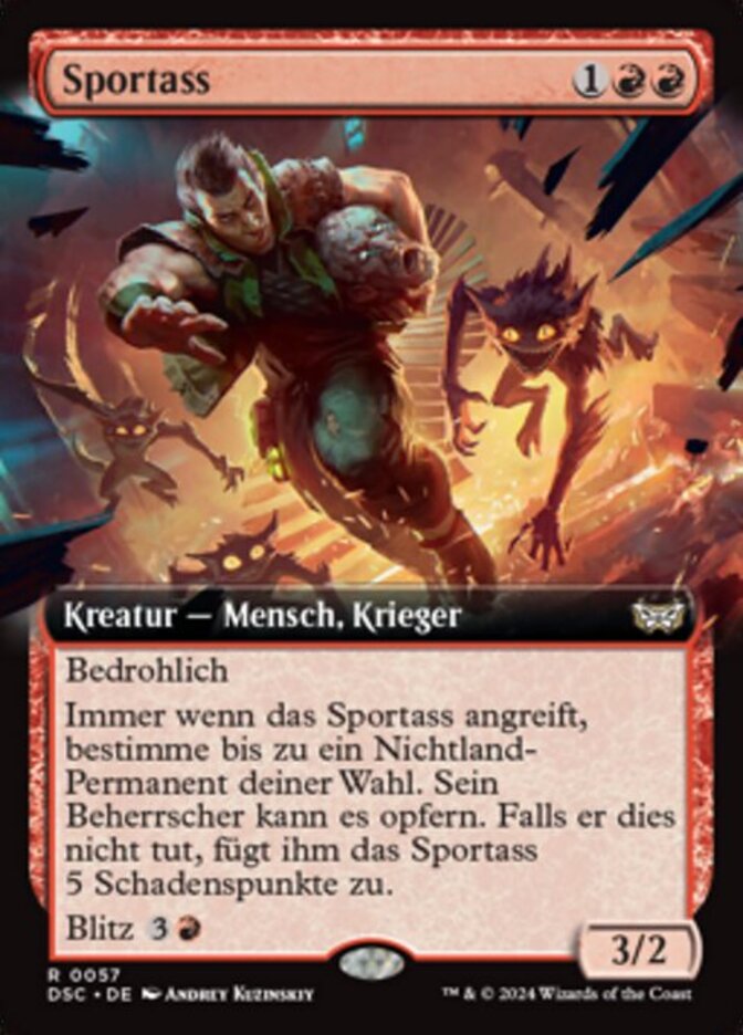 | Rules | Menace Whenever Star Athlete attacks, choose up to one target nonland permanent. Its controller may sacrifice it. If they don't, Star Athlete deals 5 damage to that player. Blitz (If you cast this spell for its blitz cost, it gains haste and "When this creature dies, draw a card." Sacrifice it at the beginning of the next end step.) |