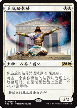 | Rules | Enchantment spells you cast cost less to cast. Whenever an enchantment you control is put into a graveyard from the battlefield, put a +1/+1 counter on Starfield Mystic. |