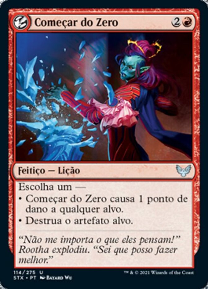 | Rules | Choose one — • Start from Scratch deals 1 damage to any target. • Destroy target artifact. |