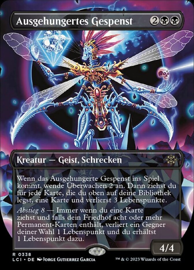 | Rules | When Starving Revenant enters the battlefield, surveil 2. Then for each card you put on top of your library, you draw a card and you lose 3 life. Descend 8 — Whenever you draw a card, if there are eight or more permanent cards in your graveyard, target opponent loses 1 life and you gain 1 life. |