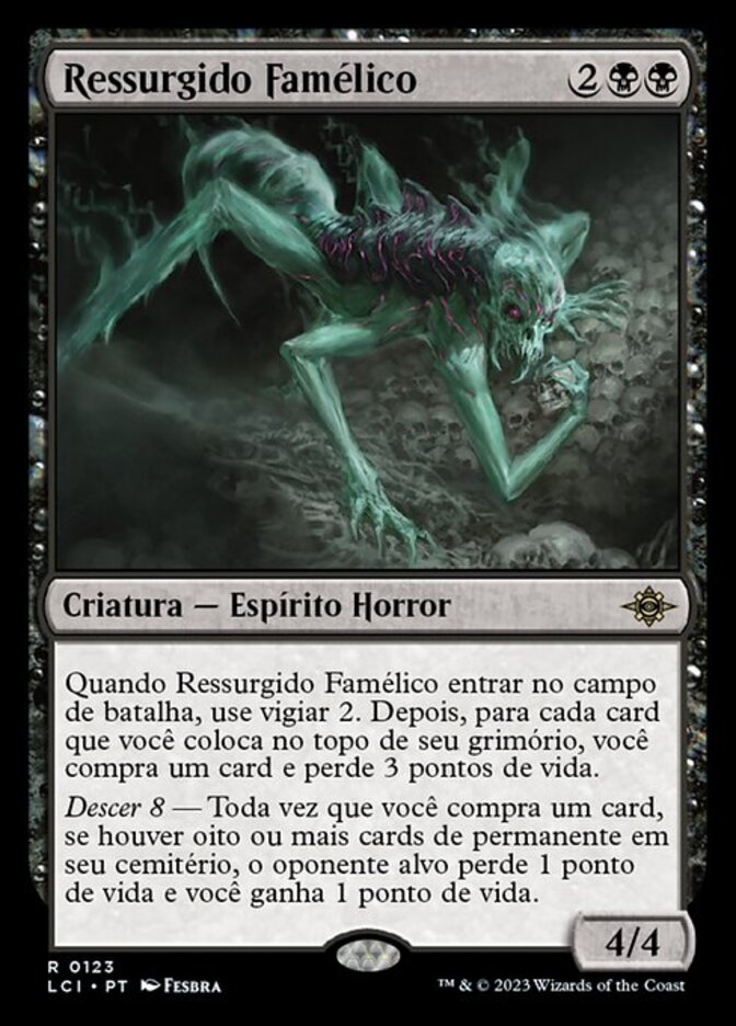 | Rules | When Starving Revenant enters the battlefield, surveil 2. Then for each card you put on top of your library, you draw a card and you lose 3 life. Descend 8 — Whenever you draw a card, if there are eight or more permanent cards in your graveyard, target opponent loses 1 life and you gain 1 life. |