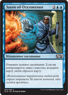 | Rules | Counter target spell. If you control a blue creature, draw a card, then discard a card. |