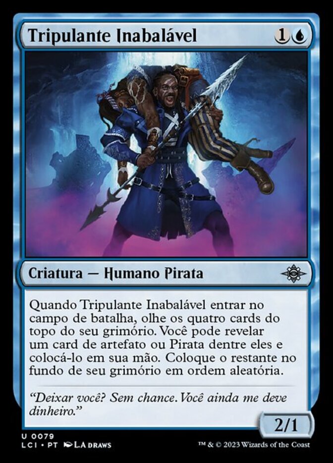 | Rules | When Staunch Crewmate enters the battlefield, look at the top four cards of your library. You may reveal an artifact or Pirate card from among them and put it into your hand. Put the rest on the bottom of your library in a random order. |