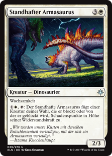 | Rules | Vigilance , : Steadfast Armasaur deals damage equal to its toughness to target creature blocking or blocked by it. |