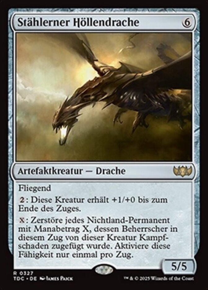 | Rules | Flying : Steel Hellkite gets +1/+0 until end of turn. : Destroy each nonland permanent with mana value X whose controller was dealt combat damage by Steel Hellkite this turn. Activate only once each turn. |