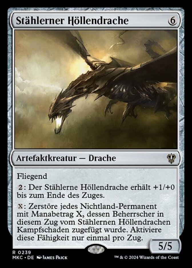 | Rules | Flying : Steel Hellkite gets +1/+0 until end of turn. : Destroy each nonland permanent with mana value X whose controller was dealt combat damage by Steel Hellkite this turn. Activate only once each turn. |
