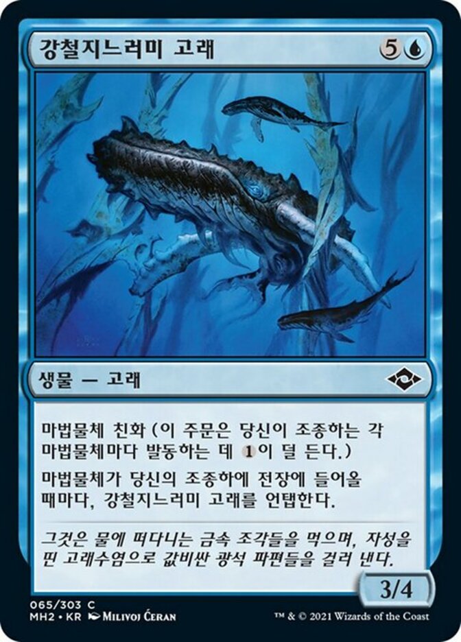 | Rules | Affinity for artifacts (This spell costs less to cast for each artifact you control.) Whenever an artifact enters the battlefield under your control, untap Steelfin Whale. |