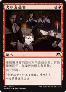 Rules Stensia Banquet deals damage to target opponent or planeswalker equal to the number of Vampires you control.