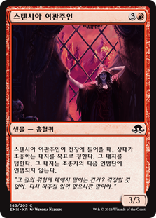 | Rules | When Stensia Innkeeper enters the battlefield, tap target land an opponent controls. That land doesn't untap during its controller's next untap step. |