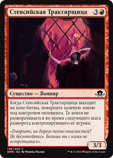| Rules | When Stensia Innkeeper enters the battlefield, tap target land an opponent controls. That land doesn't untap during its controller's next untap step. |