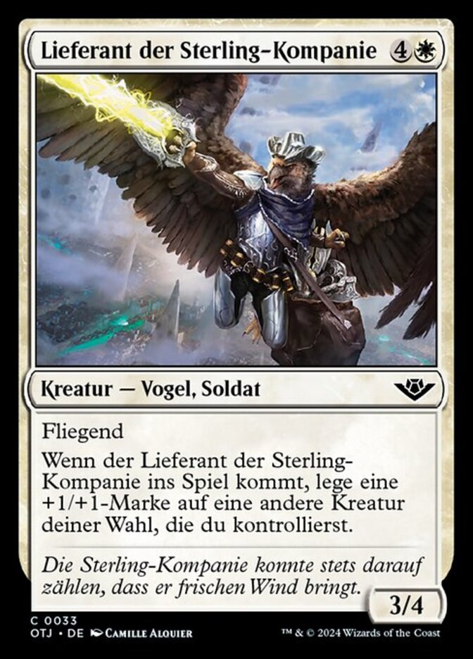 | Rules | Flying When Sterling Supplier enters the battlefield, put a +1/+1 counter on another target creature you control. |