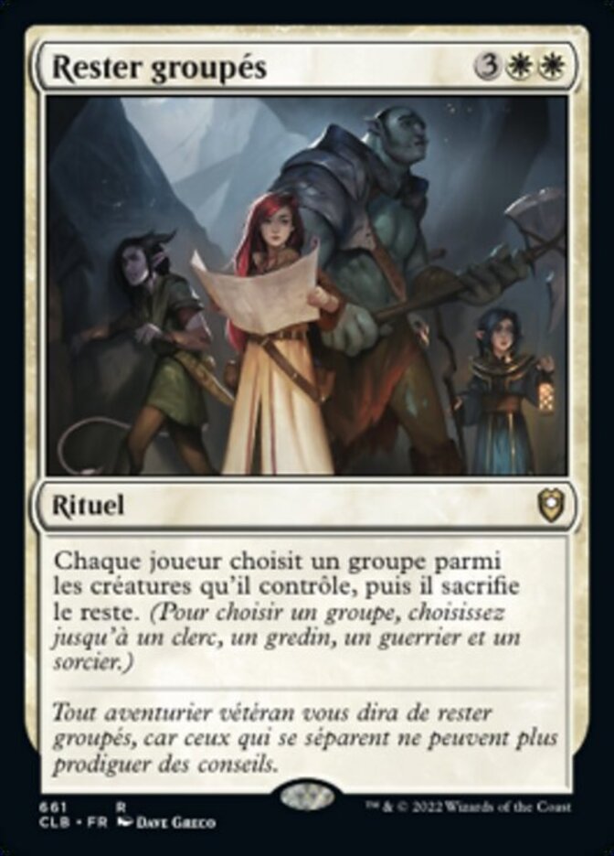 | Rules | Each player choose a party from among creatures they control, then sacrifices the rest. (To choose a party, choose up to one each of Cleric, Rogue, Warrior, and Wizard.) |