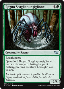 When Stingerfling Spider enters the battlefield, you may destroy target creature with flying.