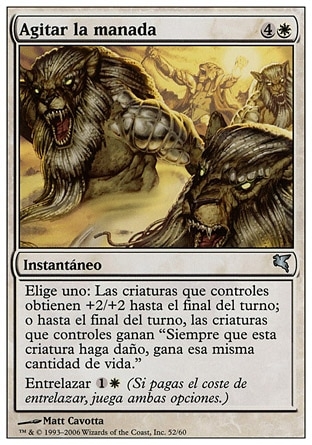 | Rules | Choose one — • Creatures you control get +2/+2 until end of turn. • Until end of turn, creatures you control gain "Whenever this creature deals damage, you gain that much life." Entwine (Choose both if you pay the entwine cost.) |
