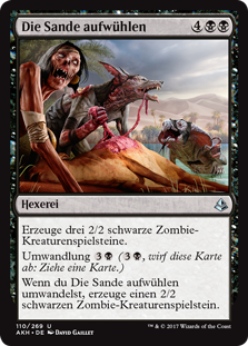 | Rules | Create three 2/2 black Zombie creature tokens. Cycling (, Discard this card: Draw a card.) When you cycle Stir the Sands, create a 2/2 black Zombie creature token. |