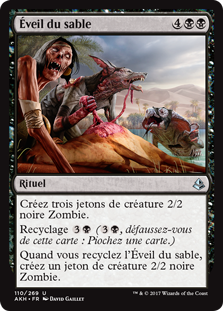 | Rules | Create three 2/2 black Zombie creature tokens. Cycling (, Discard this card: Draw a card.) When you cycle Stir the Sands, create a 2/2 black Zombie creature token. |