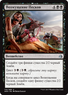 | Rules | Create three 2/2 black Zombie creature tokens. Cycling (, Discard this card: Draw a card.) When you cycle Stir the Sands, create a 2/2 black Zombie creature token. |