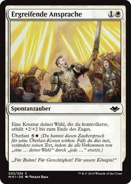 | Rules | Target creature you control gets +2/+2 until end of turn. Overload (You may cast this spell for its overload cost. If you do, change its text by replacing all instances of "target" with "each.") |