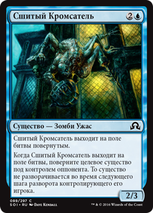 | Rules | Stitched Mangler enters the battlefield tapped. When Stitched Mangler enters the battlefield, tap target creature an opponent controls. That creature doesn't untap during its controller's next untap step. |