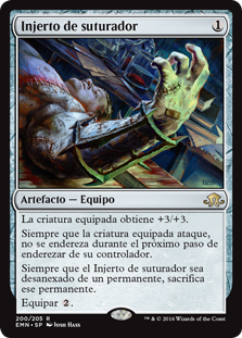 | Rules | Equipped creature gets +3/+3. Whenever equipped creature attacks, it doesn't untap during its controller's next untap step. Whenever Stitcher's Graft becomes unattached from a permanent, sacrifice that permanent. Equip |