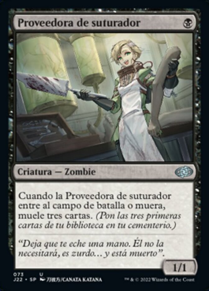 | Rules | When Stitcher's Supplier enters the battlefield or dies, mill three cards. |