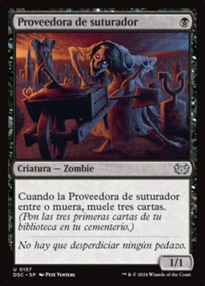| Rules | When Stitcher's Supplier enters the battlefield or dies, mill three cards. |