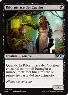 | Rules | When Stitcher's Supplier enters the battlefield or dies, mill three cards. |