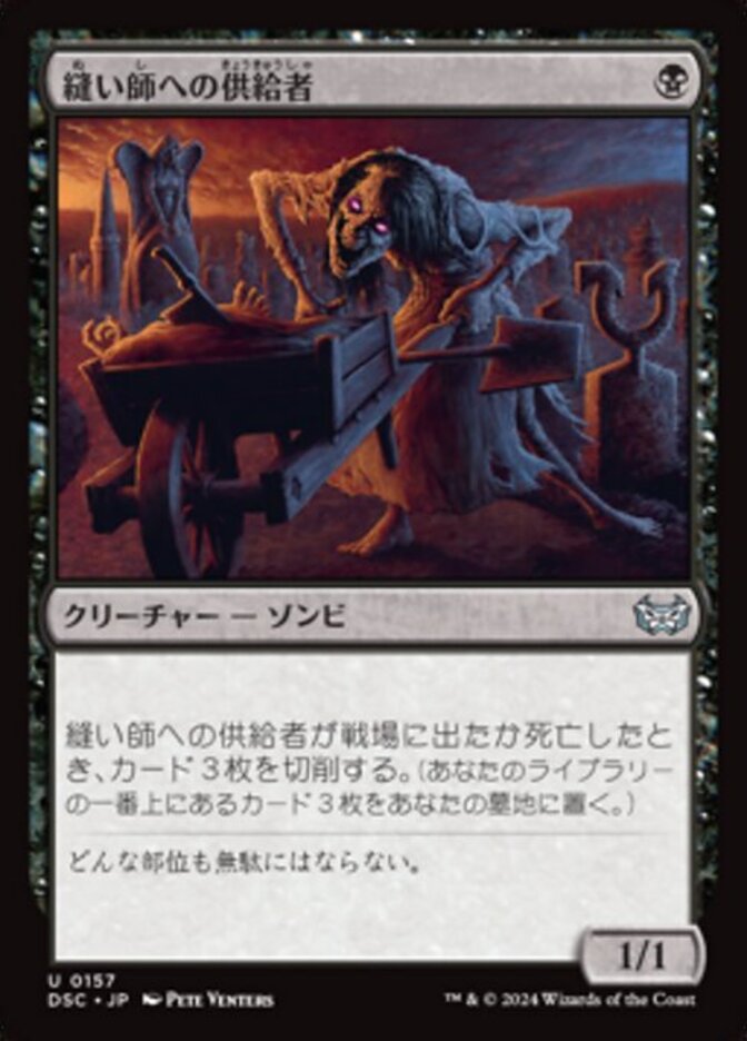 | Rules | When Stitcher's Supplier enters the battlefield or dies, mill three cards. |