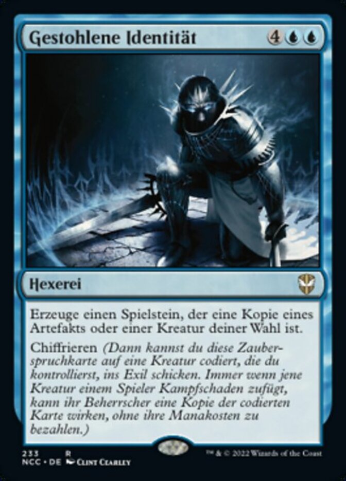 | Rules | Create a token that's a copy of target artifact or creature. Cipher (Then you may exile this spell card encoded on a creature you control. Whenever that creature deals combat damage to a player, its controller may cast a copy of the encoded card without paying its mana cost.) |