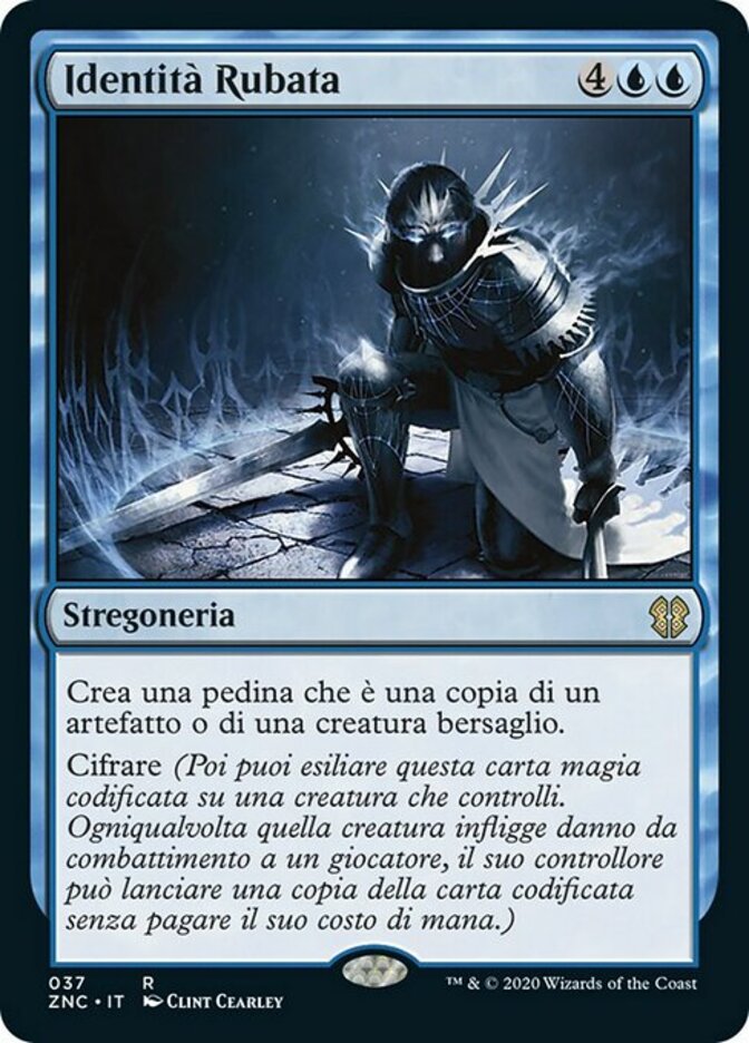 | Rules | Create a token that's a copy of target artifact or creature. Cipher (Then you may exile this spell card encoded on a creature you control. Whenever that creature deals combat damage to a player, its controller may cast a copy of the encoded card without paying its mana cost.) |