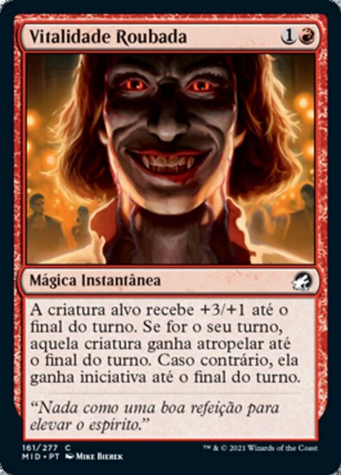 | Rules | Target creature gets +3/+1 until end of turn. If it's your turn, that creature gains trample until end of turn. Otherwise, it gains first strike until end of turn. |