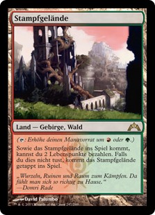 | Rules | (: Add or .) As Stomping Ground enters the battlefield, you may pay 2 life. If you don't, it enters the battlefield tapped. |