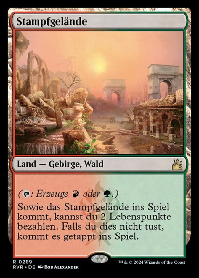 | Rules | (: Add or .) As Stomping Ground enters the battlefield, you may pay 2 life. If you don't, it enters the battlefield tapped. |